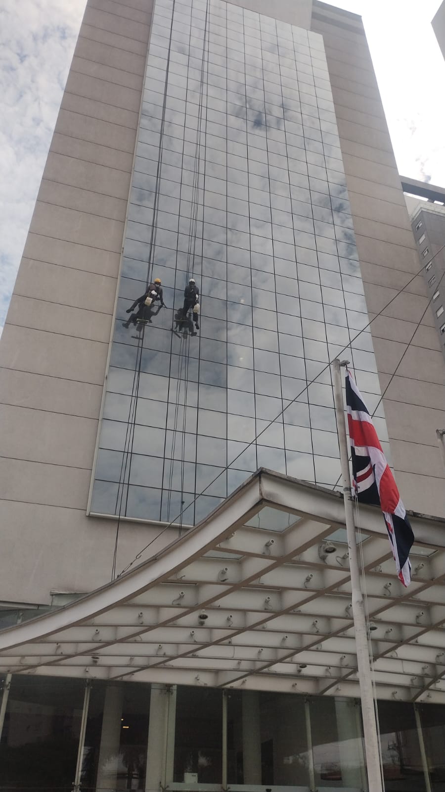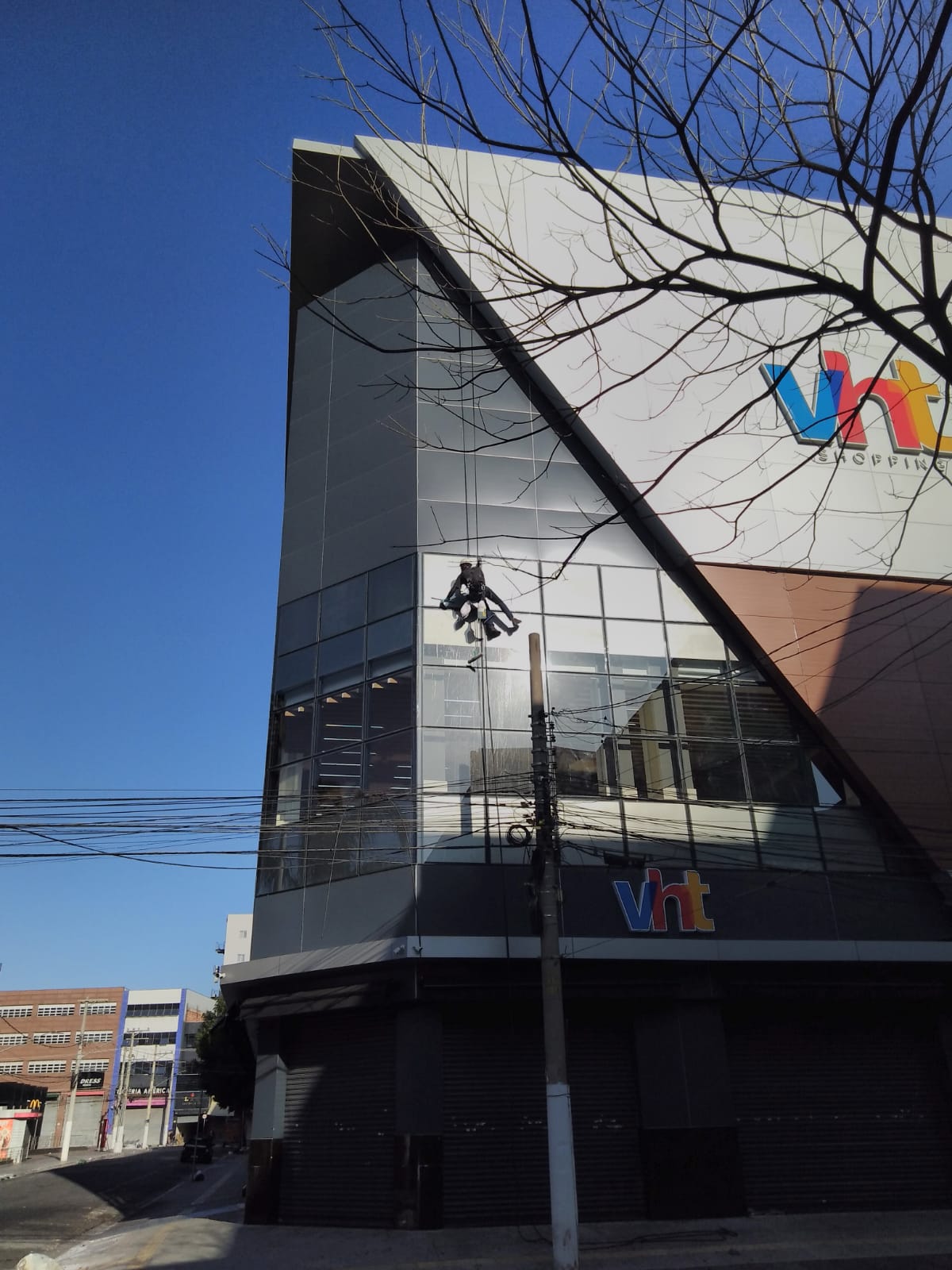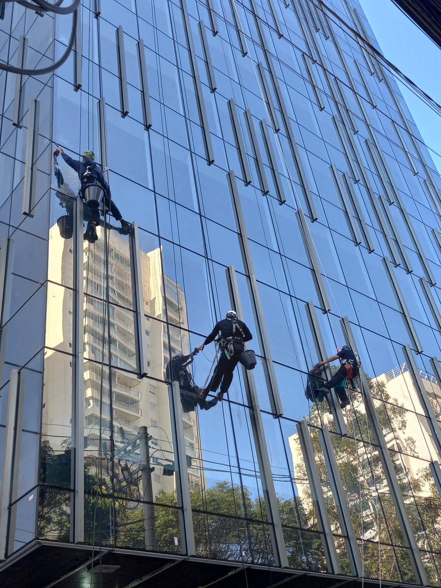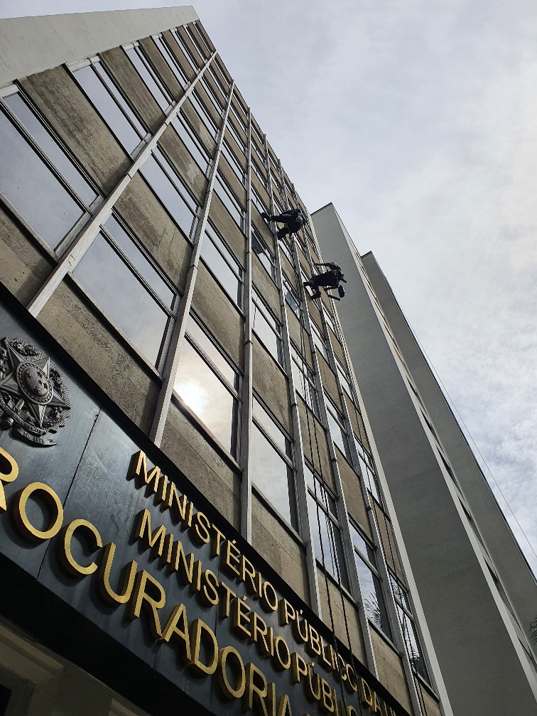 Limpeza de estruturas em pele de vidro, garantindo transparência e durabilidade.